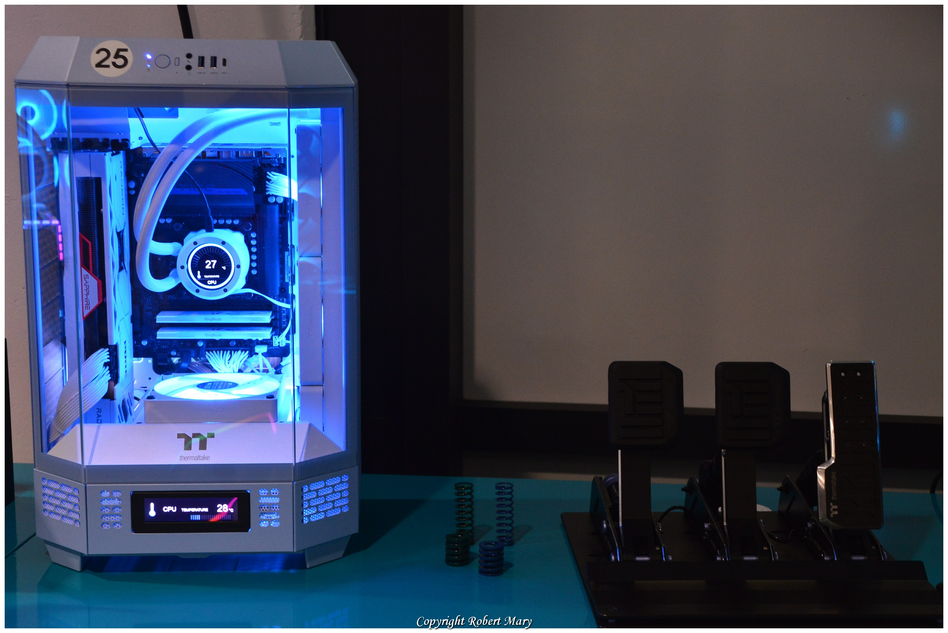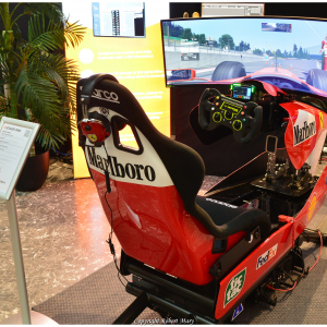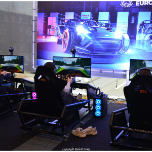 Pour les simulateurs j'ai testé pour vous celui de Sparco avec livrée Ferrari de Schumacher. Le retour de force est trop important pour moi mais c'est personnel. Je testais Assetto Corsa. Je trouve le prix onéreux (21.200 €) surtout pour un simulateur qui n'offre même pas le support dynamique sur vérins permettant les mouvements du socle. A titre de comparaison, avec un PC comparable doté de la même carte graphique, le même écran Samsung G9, un ensemble Logitech G920 monté sur "gaming rig" Next Level racing (ensemble de fixation métalique avec roulettes), on arrive à moins de 4.000 €. On me dit que le prix est justifié par le châssis rougé détaillé devant le siège... Ceci dit, l'expérience est immersive. J'ai eu la bonne surprise de tester les pédales Heusinkveld (marque néerlandaise, sa présence n'est donc pas un hasard au salon) qui sont compatibles avec un volant G29 ou G920 de Logitech (à condition de brancher le câble USB des pédales au PC), remplaçant de ce fait les pédales originales plus "bas de gamme". Ceci vous permet d'avoir un volant compatible avec tous les jeux (ce qui n'est pas forcément le cas avec des titres anciens) couplé à des pédales "haut de gamme" (de type "load cell"). Les pédales Heusinkveld Sim Pedals (Sprint, Ultimate+, etc.) sont conçues pour se connecter directement à votre PC via un câble USB dédié à un boîtier contrôleur, et non à la base du G29. Elles fonctionneront alors comme un périphérique d'entrée séparé.