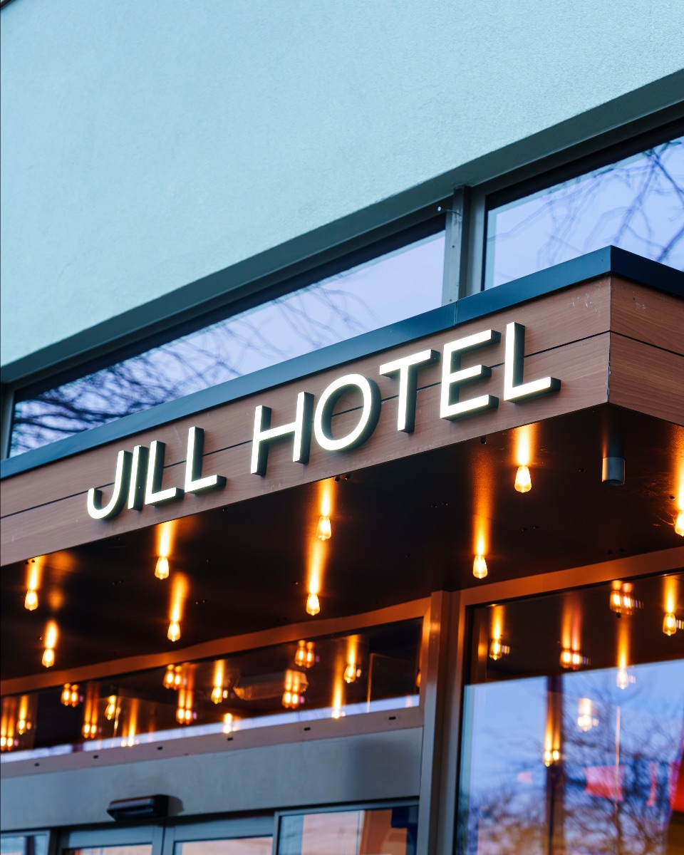 Dans une atmosphère calme, arty et chaleureuse, Jill se positionne comme une oasis de sérénité urbaine, où l’on vient se poser, se ressourcer et découvrir de nouveaux rituels de plaisir, sans renoncer à la convivialité. Avec ses 55 chambres rénovées, son bar, son jardin patio, son espace restaurant et sa salle de sport, Jill Hotel se positionne comme un boutique hotel installé au cœur le la ville.