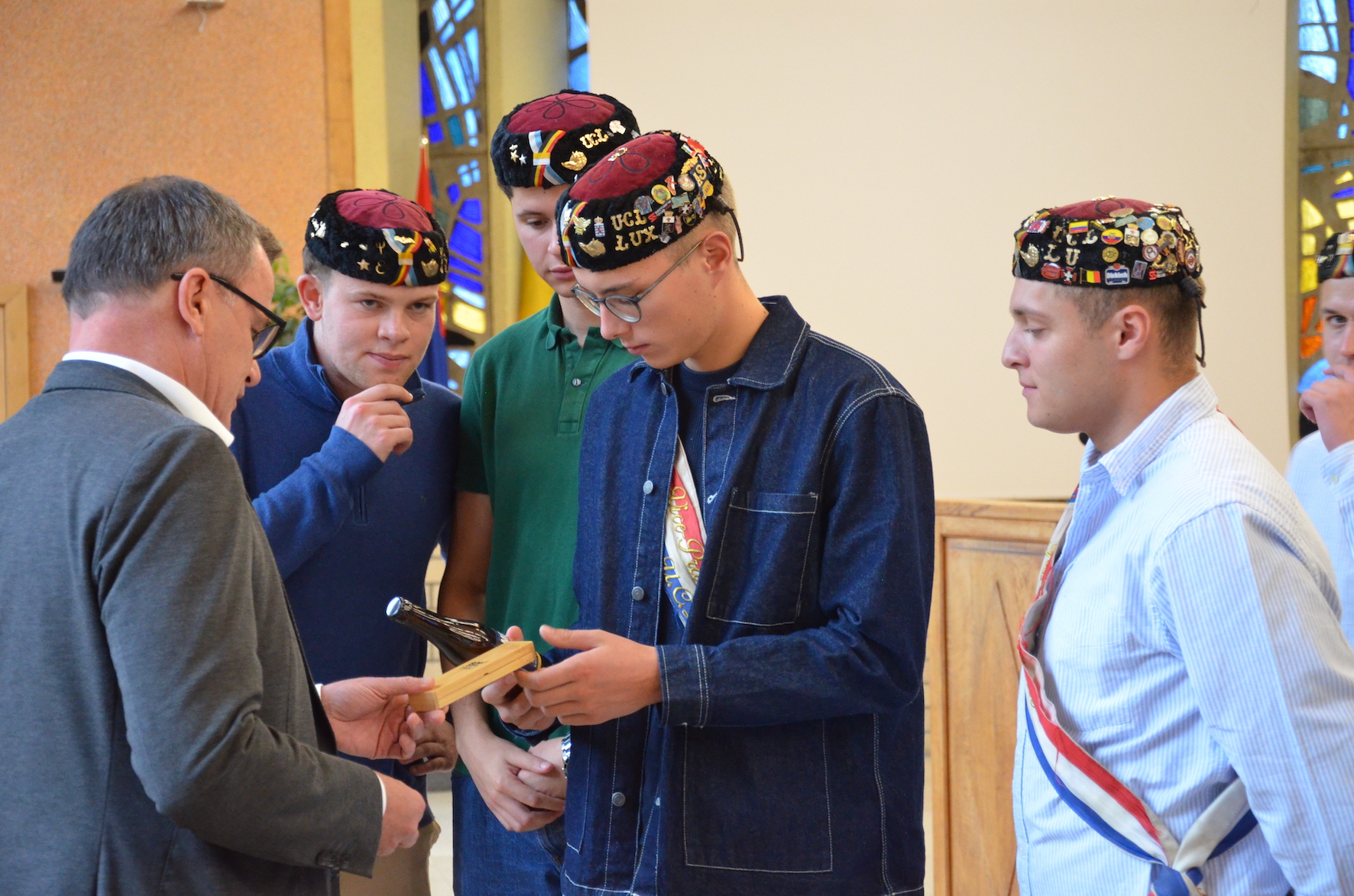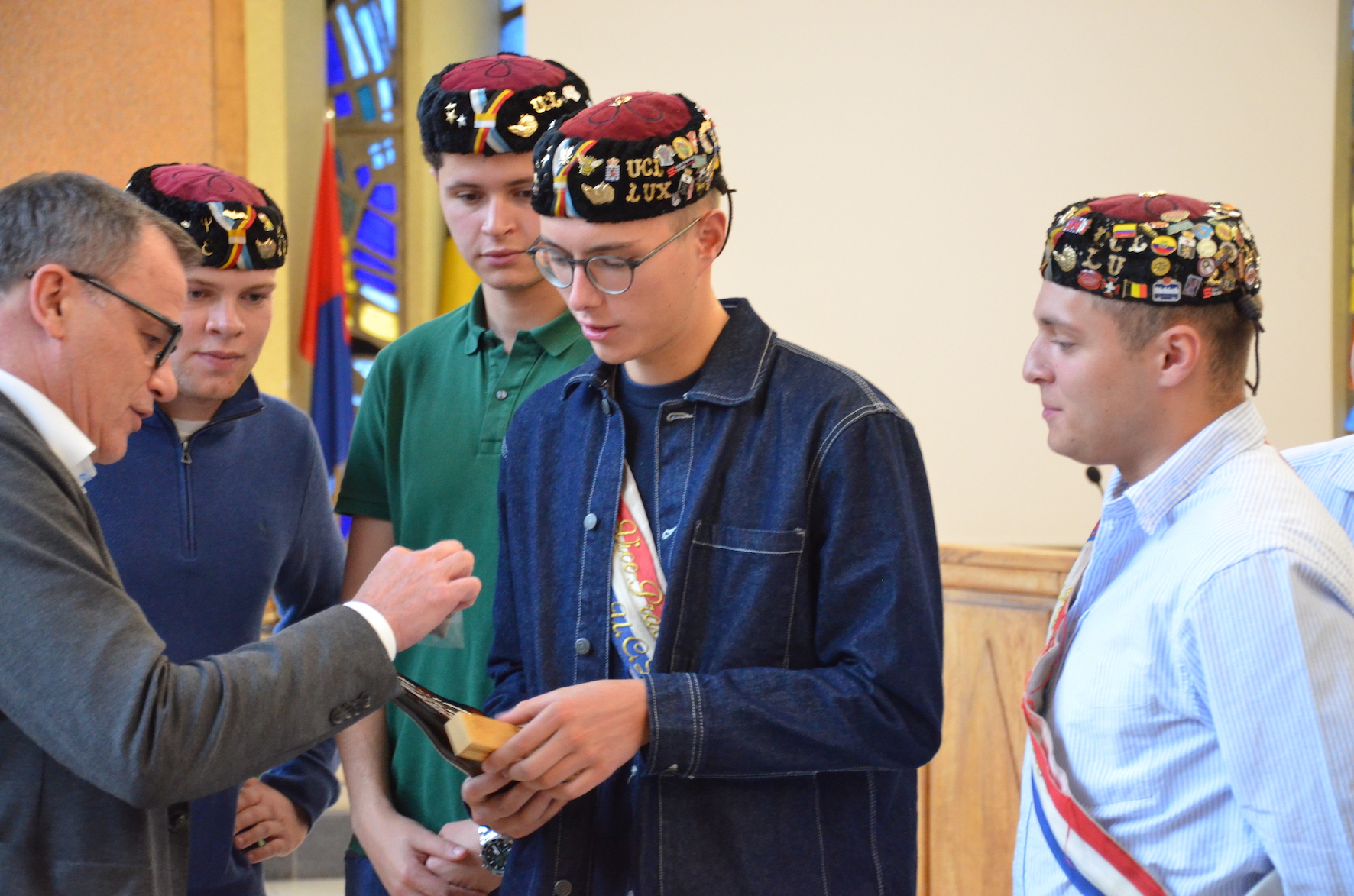 Ce vendredi 10 octobre 2025, Benoid Lutgen, Bourgmestre de Bastogne , recevait à la maison communale l'artiste Marie-Elise de Rachamps et les responsables de la LUX UCL, la Société Royale Luxembourgeoise des Étudiants de l’UCLouvain.